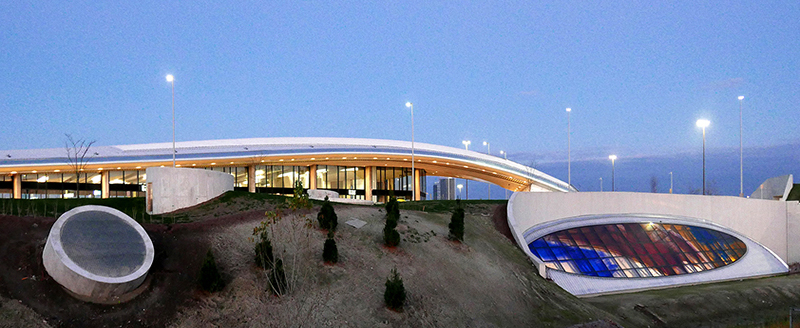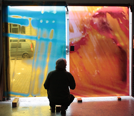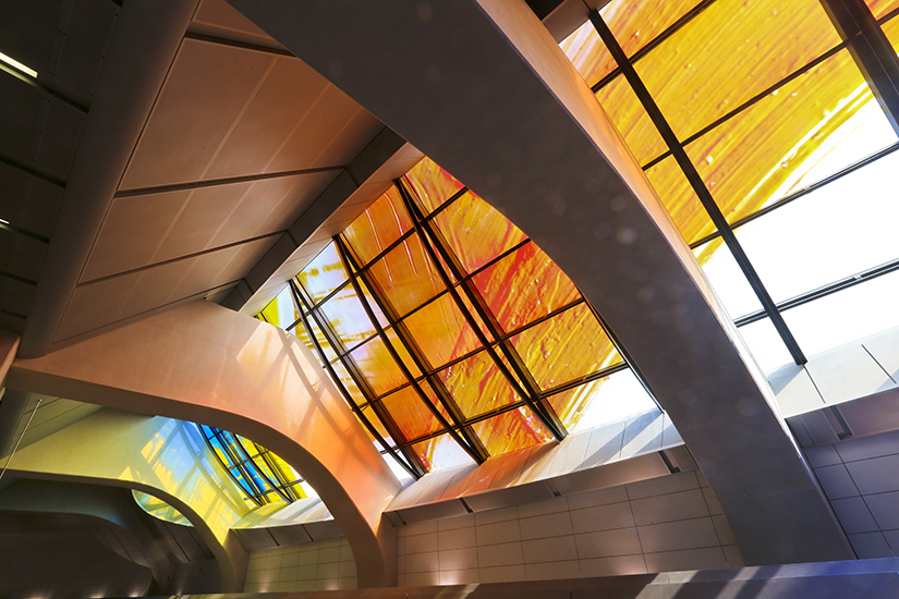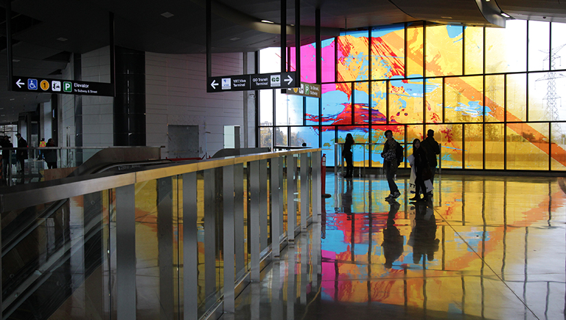 Bus Terminal curtain wall artwork utilizes transparent enamels