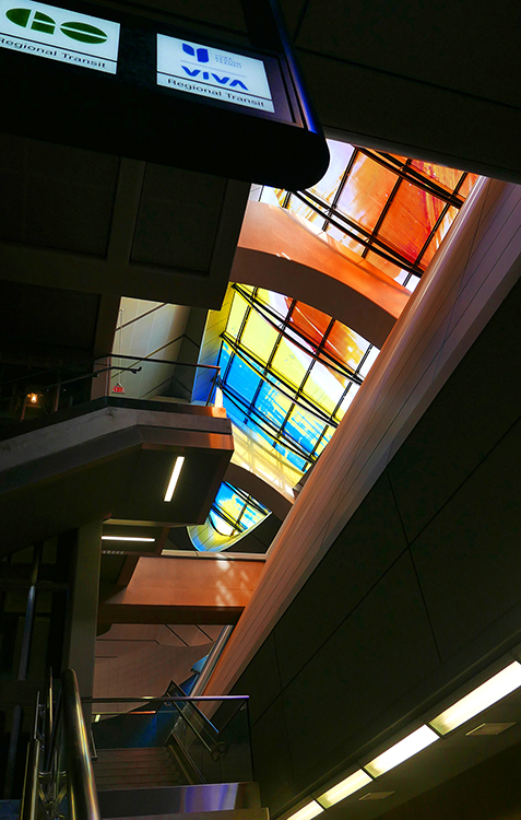 " ...vast swaths of the Highway 407 Station ... are bathed in coloured light