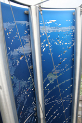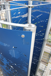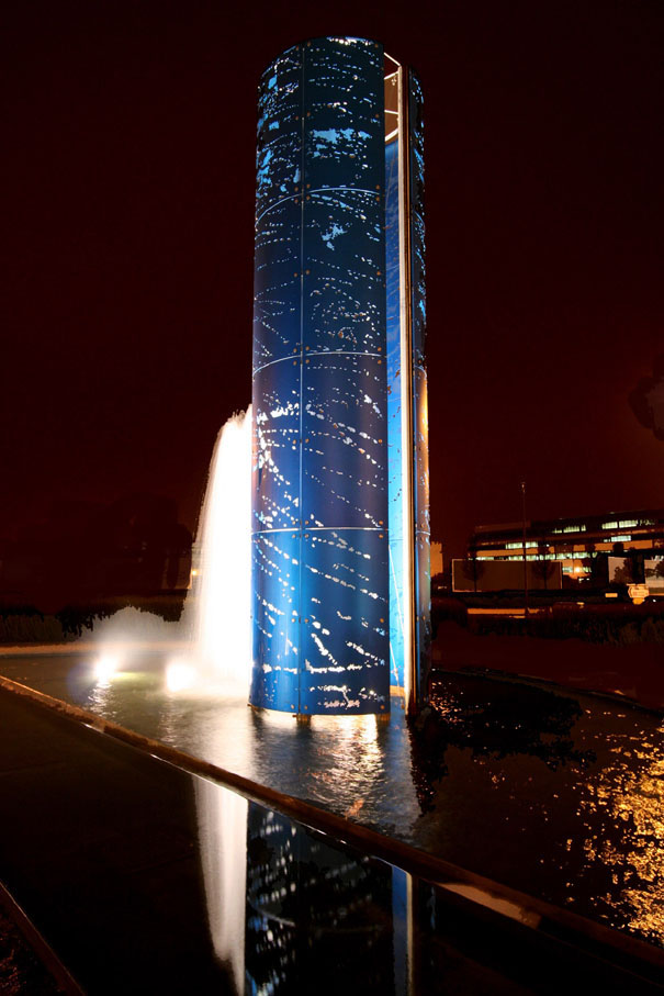 sculpture for water, light and laser cut colour anodized aluminum