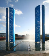 ' TWR DWR - BLUE WATER TOWERS ' - CALLAGHAN SQUARE CARDIFF WALES UK